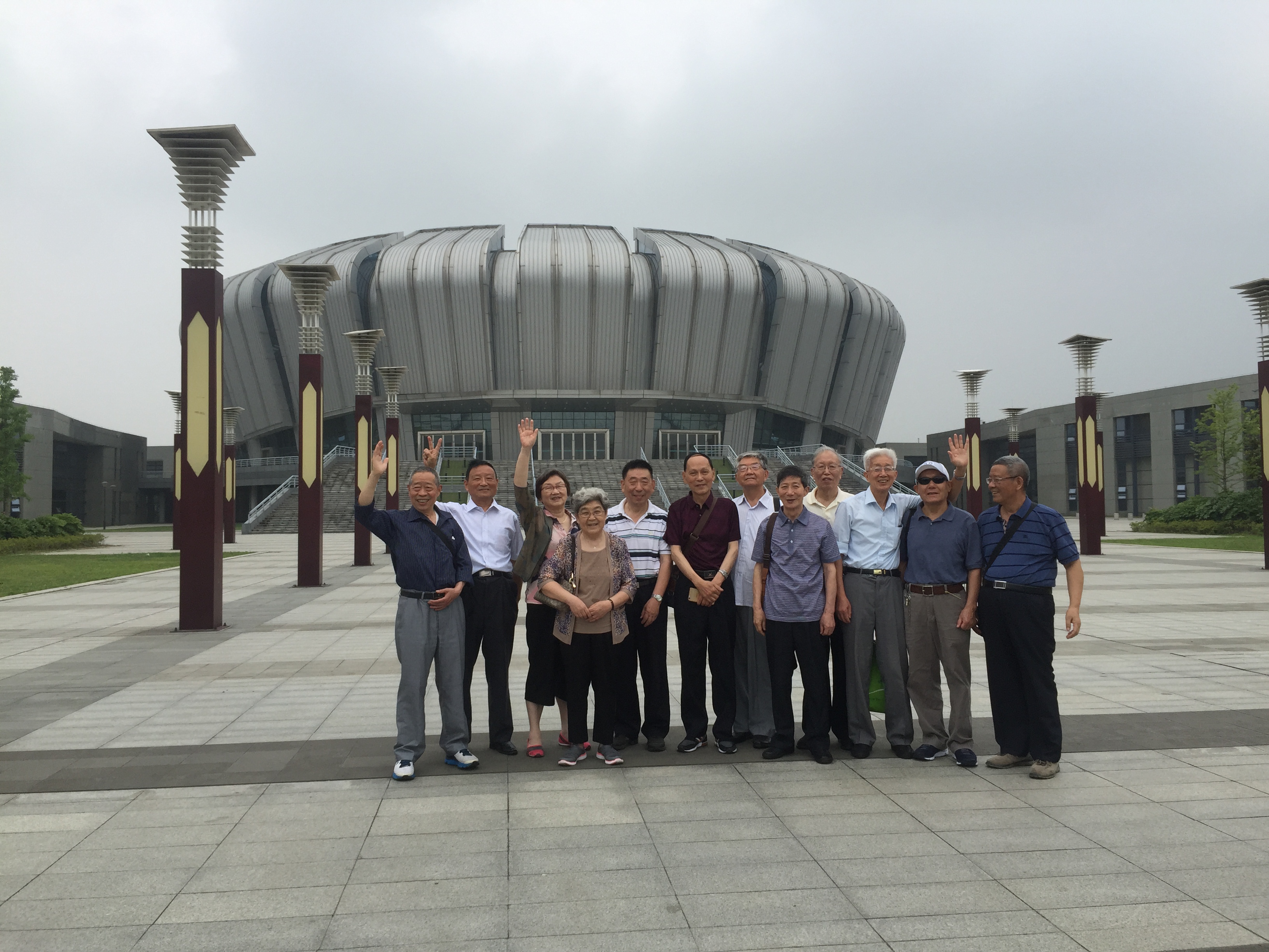 校友在体育馆前合影