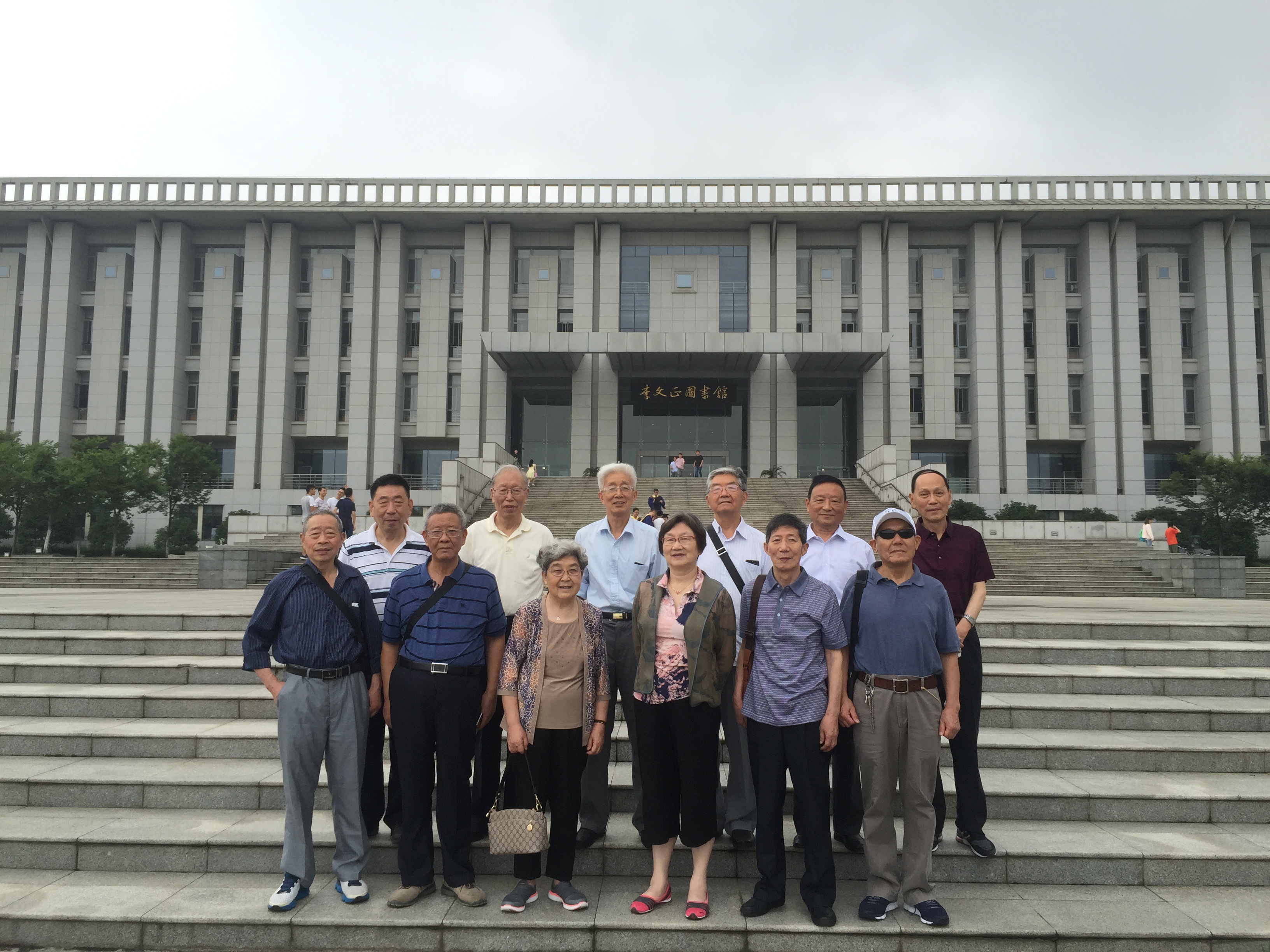 校友在图书馆前合影