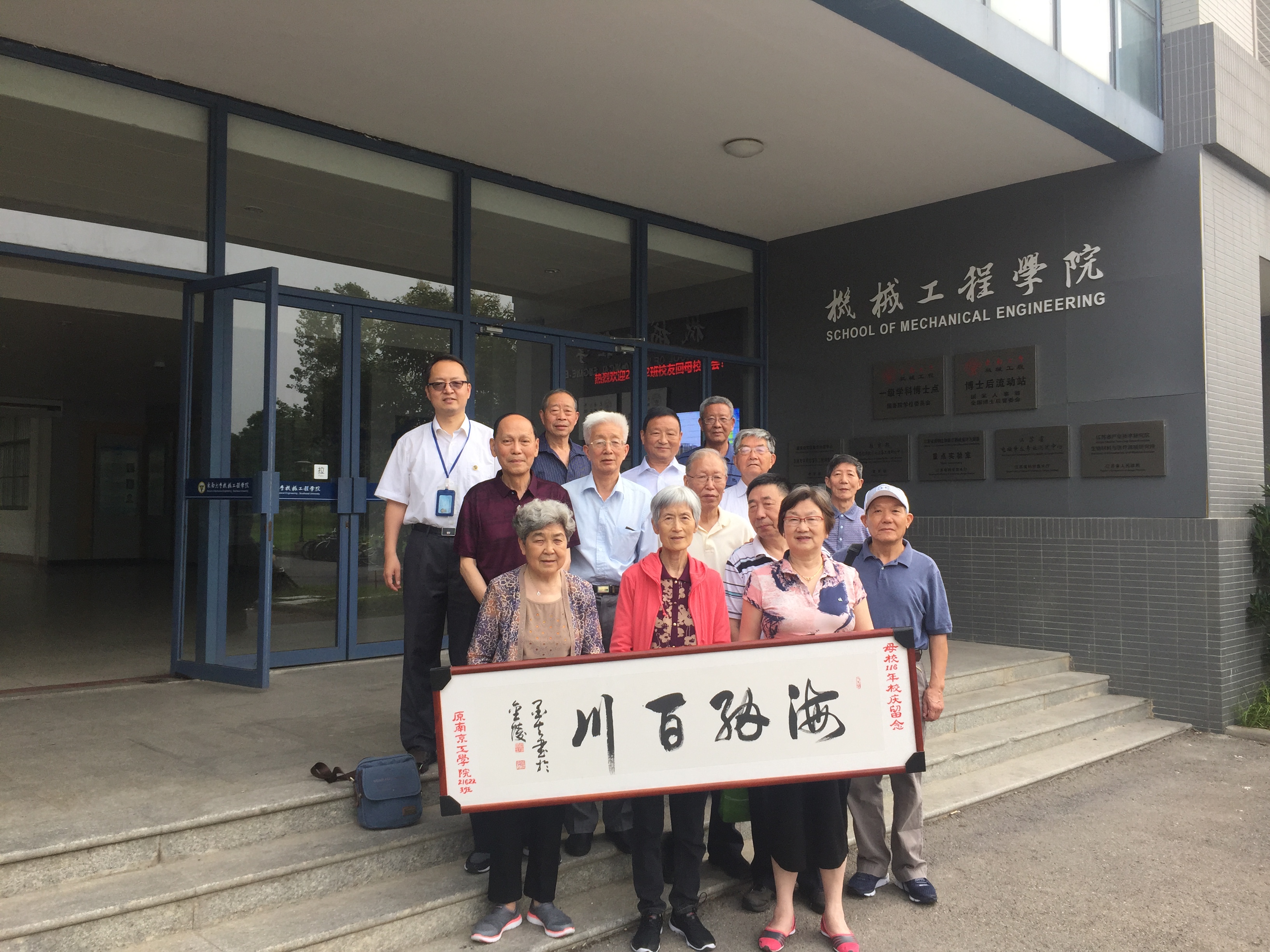 2018年6月10日,21622班校友一行13人回母校聚会庆祝毕业50周年。校友们漫步于图书馆前、六朝松下,一起参观实验室、乘坐无人驾驶车,回忆当初、共叙友情。学院党委书记张志胜教授和校友会付瑜老师热情接待各位校友并对校友的到来表示热烈欢迎!
