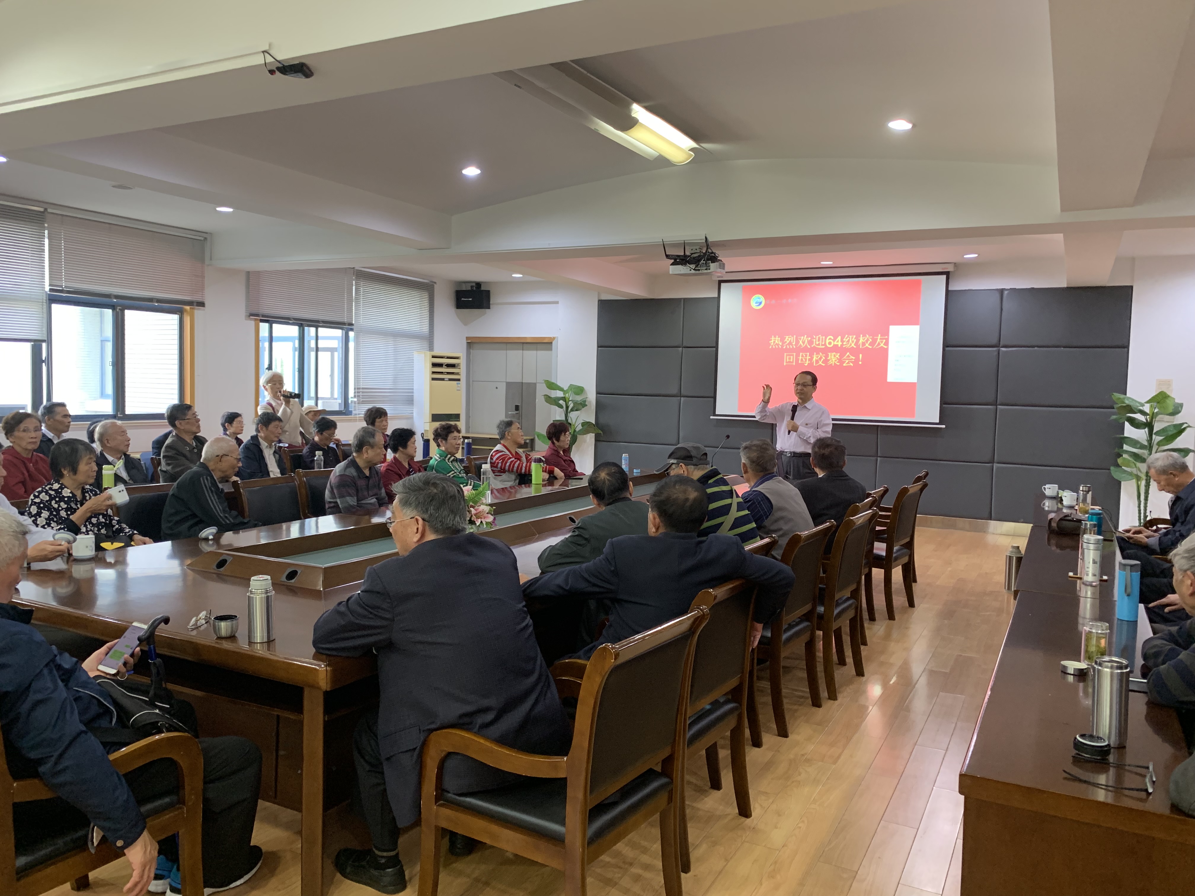 2019年10月20日上午,64级(3、4、5班)校友及亲属一行59人回母校聚会庆祝毕业五十周年。糖心视频 党委书记张志胜教授、校友会秘书付瑜老师热情接待校友,并对他们的到来表示欢迎!