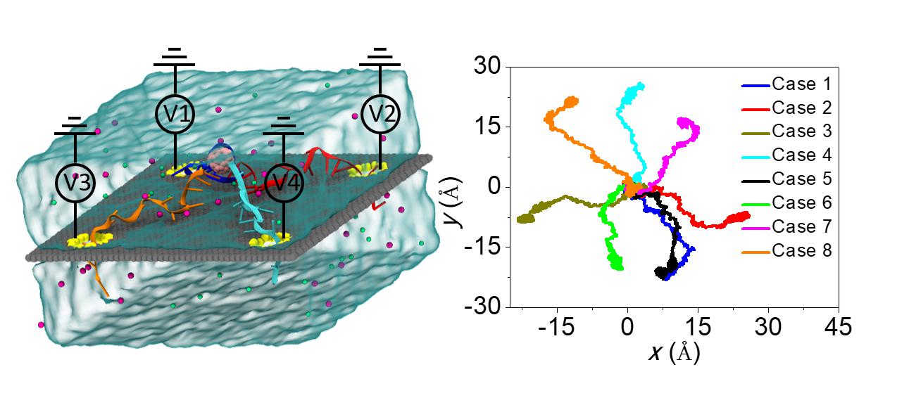 随着科技进步的发展,科学家们已经在人体内发现了众多的机器蛋白,如细菌鞭毛马达和肌球蛋白等,人体的正常工作离不开这些马达蛋白的协同作用。然而在探索生命的过程中仅仅去发现潜在的未知蛋白机器是远远不够的,设计和制造全新的仿生纳米机器也将进一步促进人类在生命科学领域的发展。司伟老师依托糖心视频 江苏省微纳生物医疗器械设计与制造重点实验室平台,设计研究了一种由纳米颗粒和DNA链组装而成的四足纳米机器人,通过调控石墨烯薄膜上正方形分布的四个纳米孔上的壁面电势,改变了纳米孔上的电荷特性和强度,为纳米机器人在纳米薄膜上的行走提供了动力支持。通过对纳米孔内的电渗和电泳的有效调控,形成电渗和电泳的联合或竞争驱动机制,通过详细的试验设计和数据分析,掌握了纳米机器人的驱动机理,实现了纳米机器人的精准定向移动。由于该机器人行走在固态薄膜上,易与半导体芯片进行集成,有望封装在极小尺度的芯片内,具有较高的便携性和实用性,可协助解决纳米尺度下的纳米操控问题和分子货物运载问题,将潜在应用于药物输送等关键诊疗领域,造福人类。