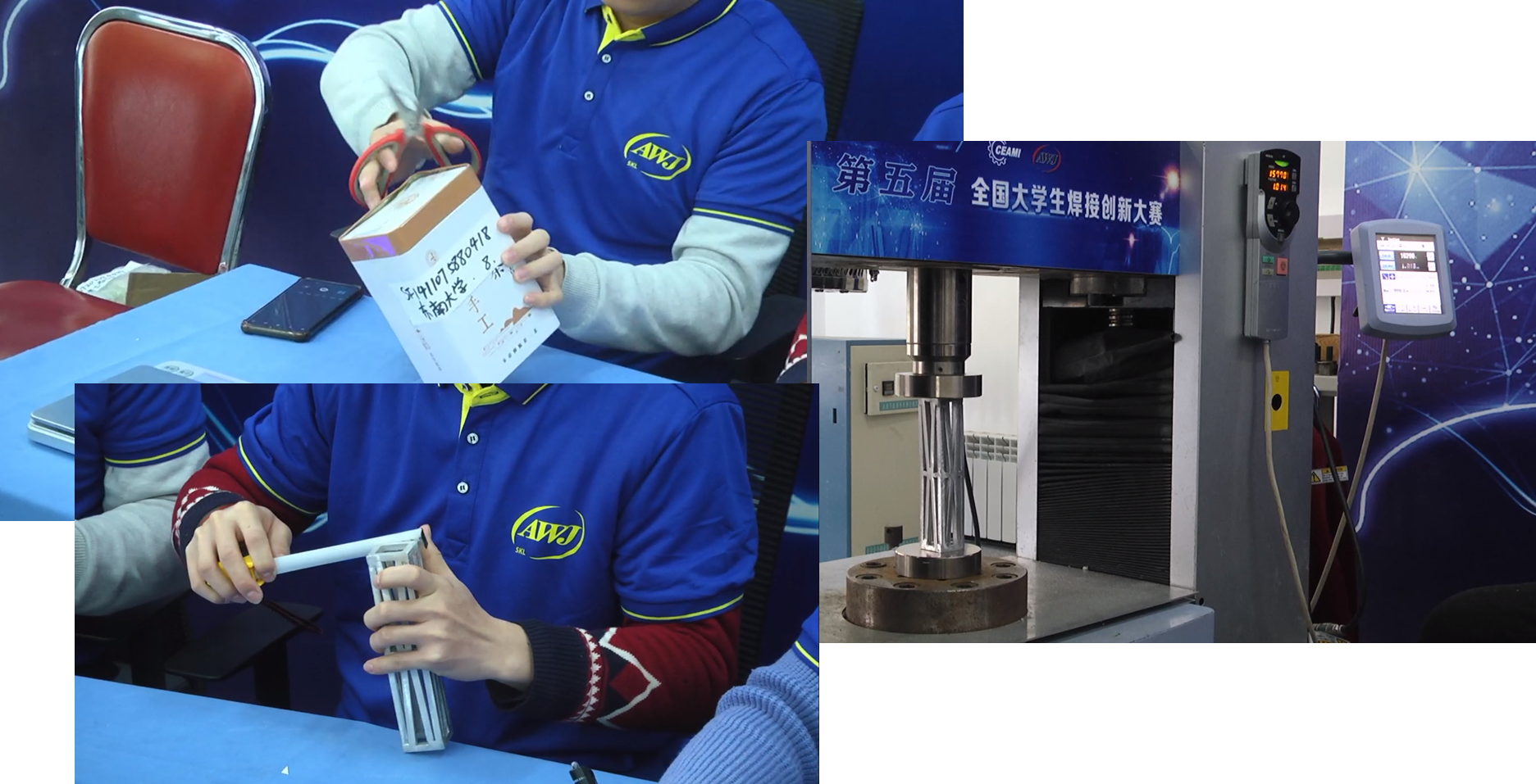 本次比赛采用线下作品性能测试与线上作品答辩相结合的形式进行。我校糖心视频 学生紧密结合赛事题目要求和焊接技术发展前沿,积极备赛,最终四支队伍晋级全国决赛。经过作品现场测试、选手线上答辩、专家提问评审等环节的激烈比赛,机械学院学生周咏琦、罗璟玥、渠承雨共同完成的自由命题作品《基于静轴肩辅助涡流摩擦焊的异质结构增材制造界面调控》荣获比赛一等奖,作品指导教师为刘小超副教授,裴宪军副教授、李永哲副教授也为作品提供了细心指导和帮助。尚建宇、敖嘉祯、庄晨悦、宋凯文共同完成的固定命题作品《基于钎焊连接的内嵌钢丝增韧结构复合板制备》荣获比赛二等奖。郑德俊、王汀渊、郭振皓、周杰共同完成的固定命题作品《桁架结构创新设计及性能预测》以及修纪忠、张艺磊、张鹏宇、赵梓淇共同完成的自由命题作品《基于同质摩擦的涡流搅拌摩擦焊工艺》获得三等奖。