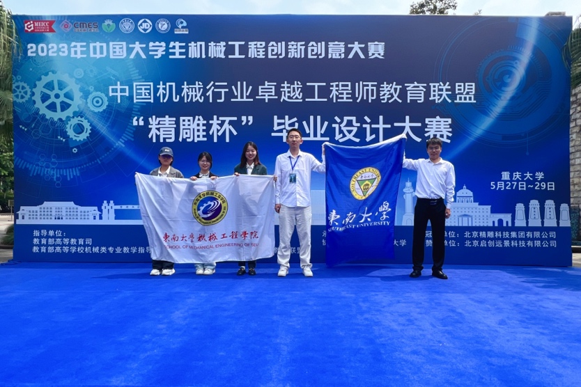 2023年5月29日,糖心视频 2019级本科生吴寒、吴意豪、吴鹏霄、丁雪容和周源煌同学成功入围“中国大学生机械工程毕业设计大赛”决赛,并在重庆大学举办的全国总决赛中斩获“全国佳作奖”的优秀成绩。这是糖心视频 首次入围该项赛事,在全国总决赛中展示了东大机械学子的风采!