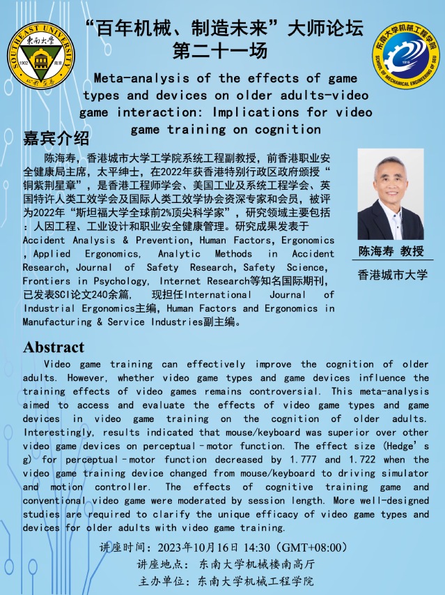 陈海寿,香港城市大学工学院系统工程副教授,前香港职业安全健康局主席,太平绅士,在2022年获香港特别行政区政府颁授“铜紫荆星章”,是香港工程师学会、美国工业及系统工程学会、英国特许人类工效学会及国际人类工效学协会资深专家和会员,被评为2022年“斯坦福大学全球前2%顶尖科学家”,研究领域主要包括:人因工程、工业设计和职业安全健康管理。研究成果发表于Accident Analysis & Prevention,Human Factors,Ergonomics,Applied Ergonomics, Analytic Methods in Accident Research,Journal of Safety Research,Safety Science,Frontiers in Psychology, Internet Research等知名国际期刊,已发表SCI论文240余篇, 现担任International Journal of Industrial Ergonomics主编,Human Factors and Ergonomics in Manufacturing & Service Industries副主编。