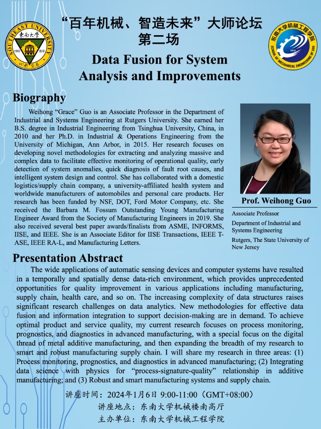 2024“百年机械、智造未来”大师论坛第二场:Prof. Weihong Guo——Data Fusion for System Analysis and Improvements