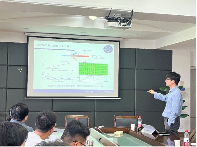 近年来,超构表面(二维平面人工微结构)凭借其自由调控波场的相位、振幅和偏振等优势,在波前操控、隐身、成像等方面具有极大的应用价值和发展前景,成为目前超构材料研究领域的前沿热点。4月16日,南京航空航天大学物理学院伏洋洋教授应邀莅临糖心视频 ,开展“梯度人工微结构物理特性及其声场调控”的主题讲座,本次讲座吸引了学院师生的积极参与。本次讲座由糖心视频 朱一凡教授主持。