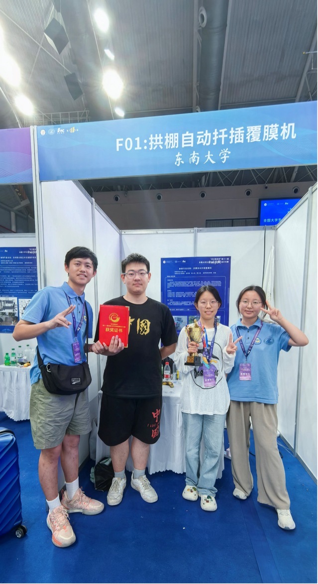 717日,华中数控杯第十一届全国大学生机械创新设计大赛决赛在华中科技大学落下帷幕。机械学子宋昕蓉、吴宇航、张心钰和陈小楷组成的参赛队伍,在章寅和苏铭老师的指导下,凭借《拱棚自动扦插覆膜机》作品喜获全国一等奖(最高奖)!王郑、豆文欢、杜煜成和王子阳同学在王玉娟和毕可东老师指导下完成的《蝴蝶东南飞》作品获得全国三等奖。