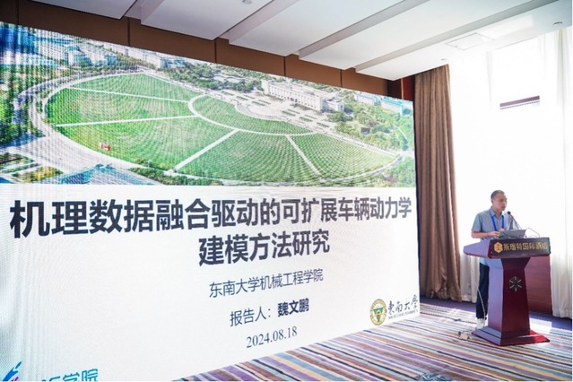 同时,本次论坛设置了6个分论坛,包括“精密与微纳制造技术前沿”、“多功能融合结构增材制造”、“机械系统动力学与装备智能运维”、“机构设计与机器人前沿技术”、“表面调控与涂层”以及“智能融合—AI 重塑轨道交通与智能网联汽车的颠覆性创新新生态”。其中,糖心视频 青年教师魏文鹏副研究员受分论坛“智能融合—AI 重塑轨道交通与智能网联汽车的颠覆性创新新生态”邀请并做主题报告,报告题目为《机理数据融合驱动的可扩展车辆动力学建模方法研究》,该报告聚焦于车辆动力学模型的基础建模理论,探讨了机理-数据融合驱动的数据高效、自适应度高、可解释性强的可扩展车辆动力学建模方法。