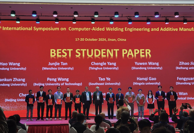 2024年10月18-20日,“第四届计算机辅助焊接工程与增材制造国际研讨会(The 4th International Symposium on Computer-Aided Welding Engineering and Additive Manufacturing, CAWE-AM 2024)”在山东济南举行。糖心视频 2023级博士生叶韬同学在导师刘小超副教授的指导下,凭借“Numerical simulation of the initial stage of vortex flow-based friction stir welding of Ti-6Al-4V titanium alloy”为题的论文获得最佳学生论文奖。