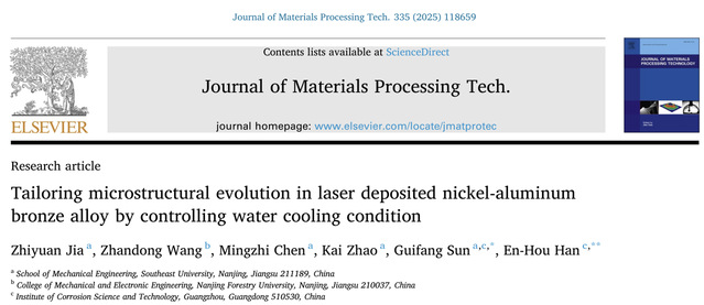 孙桂芳教授与广东腐蚀科学与技术创新研究院韩恩厚院士团队合作在通过水冷条件控制镍铝青铜合金微观结构演变取得重要进展。受镍铝青铜水下原位修复应用需求的启发,研究提出水冷条件是否有利于修复过程中形成适当的冷却速率,以防止粗大κ相的形成。采用陆上激光直接金属沉积和水下激光直接金属沉积技术对镍铝青铜基板上的梯形凹槽进行修复,系统阐明了快速冷却速率对于镍铝青铜多类型κ析出相的多重影响。相关研究成果已于近日发表在国际制造领域顶TOP期刊《Journal of Materials Processing Technology》。