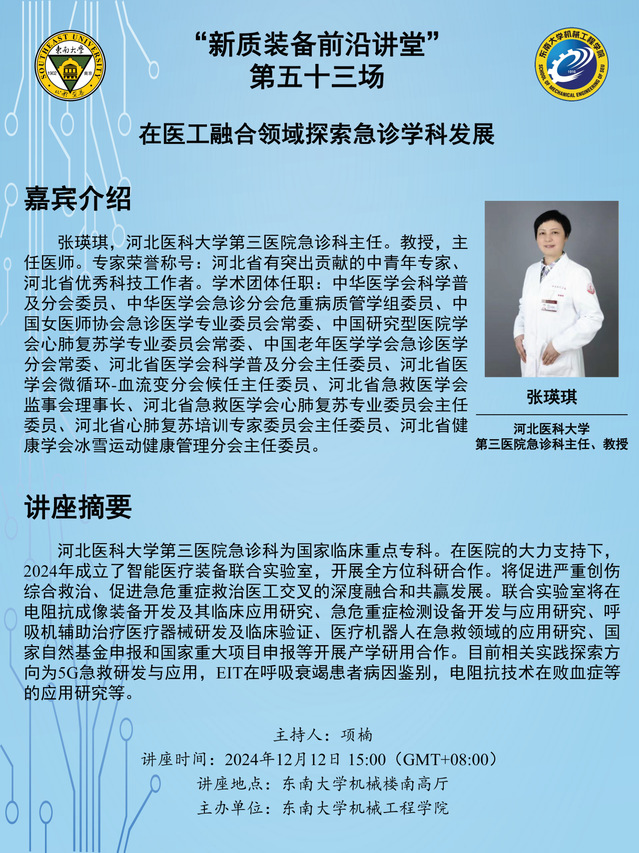“新质装备前沿讲堂”第五十三场:张瑛琪教授——在医工融合领域探索急诊学科发展