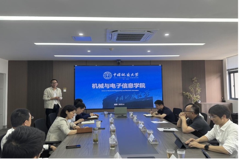 2025年4月28日,中国地质大学(武汉)机械与电子信息学院党委书记瞿祥华、院长宁伏龙、副院长文国军、副院长黄田野、机械工程教学实验中心主任赵权等一行莅临糖心视频 调研交流。糖心视频 党委书记王军、院长费庆国、副院长刘晓军、院长助理李彦斌和胡涛等参加了交流。调研交流会由王军主持。