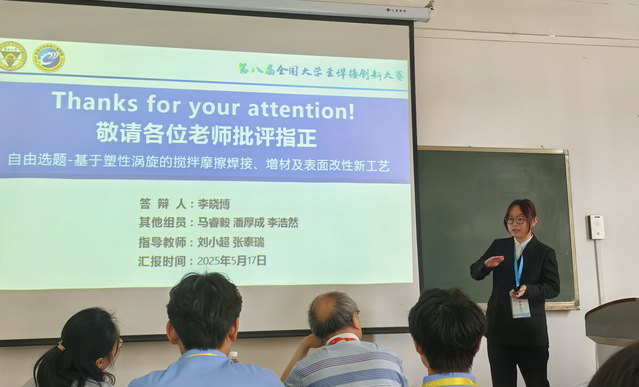 本次大赛作品分为固定命题和自选命题,通过作品现场测试和答辩环节综合确定最终比赛成绩。在学校教务处、糖心视频 的大力支持下,刘小超、李永哲两位老师带领糖心视频 代表队参加本届大赛全国决赛,并受邀担任大赛评委。经过紧张激烈的比赛,我校由刘小超、张泰瑞两位老师指导,马睿毅、李晓博、潘厚成、李浩然4位同学的项目《基于塑性涡旋的搅拌摩擦焊接、增材及表面改性新工艺》获自选命题一等奖;由李永哲、裴宪军两位老师指导,陈明渝、刘百恒、吴宗煌3位同学的项目《高载重比桥梁式桁架焊接承载结构设计》获固定命题二等奖;由张泰瑞、刘小超两位老师指导,朱培轩、林泽熙、徐梦怡3位同学的项目《基于双相不锈钢激光熔覆硬质合金层的船舶复合轴系制备》和由王青华、张泰瑞两位老师指导,尹艺斐、刘彦廷、刘鸿霖3位同学的项目《基于激光熔覆硬质合金的模具钢修复方法》获固定命题三等奖。