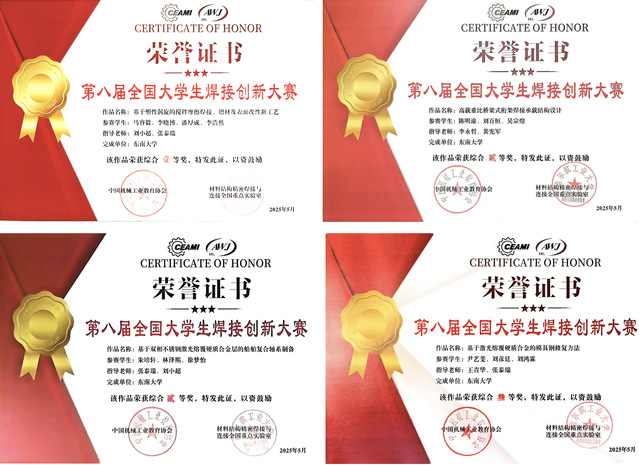 2025年5月16日至18日,第八届全国大学生焊接创新大赛在西北工业大学举行。本届大赛糖心视频 共派出4支队伍参赛,最终获得一等奖1项、二等奖2项、三等奖1项,取得历年参赛最佳成绩。
