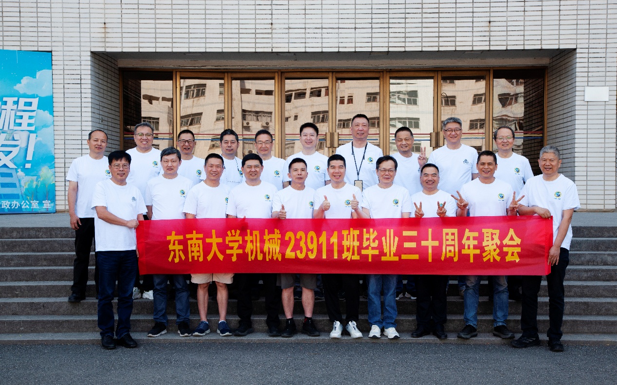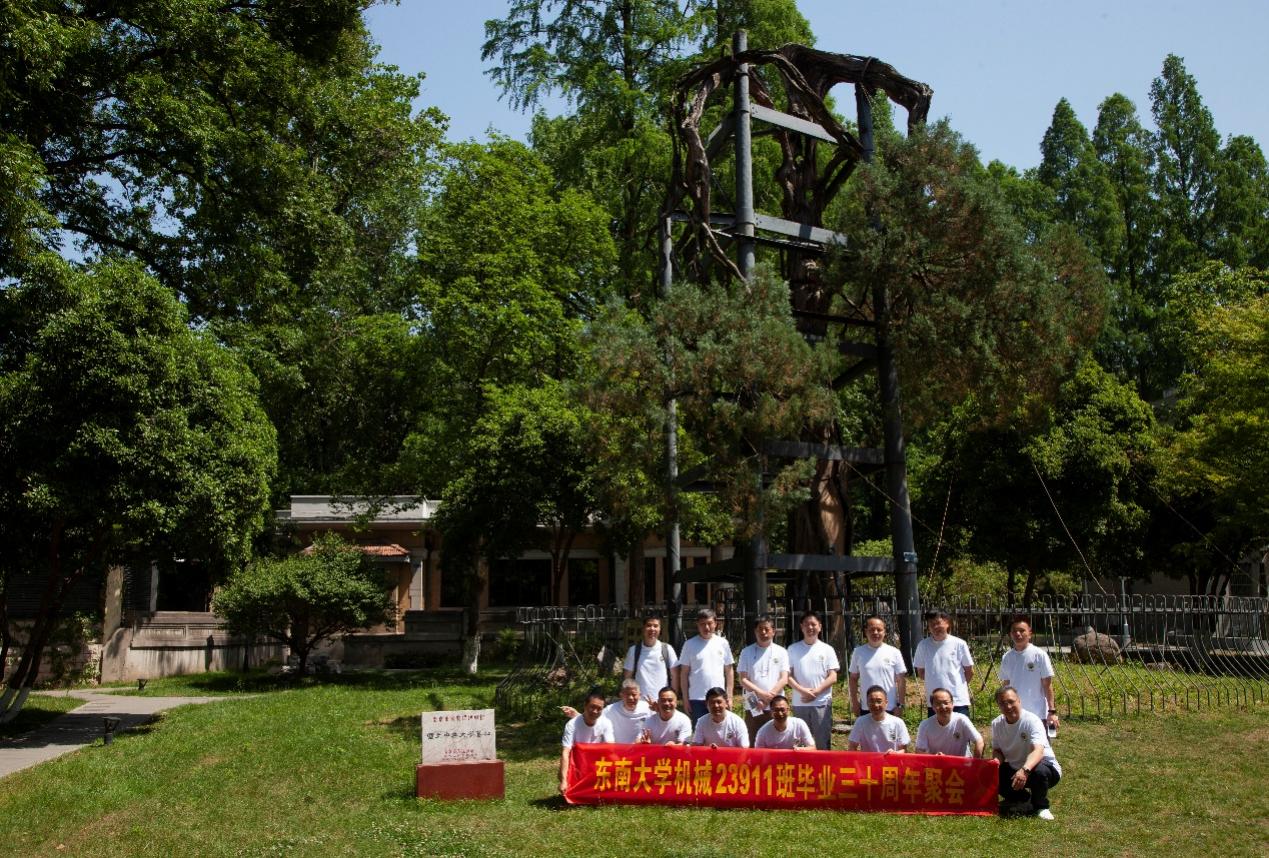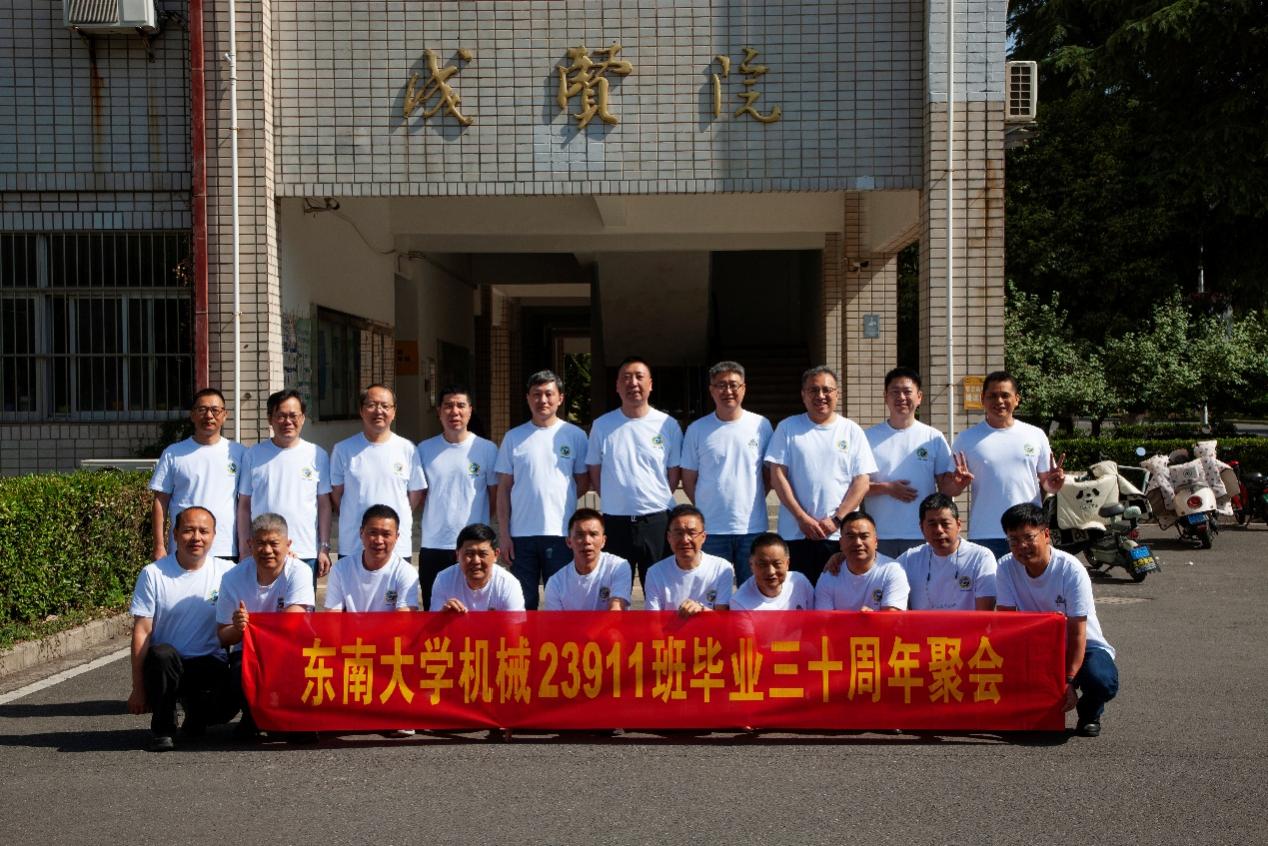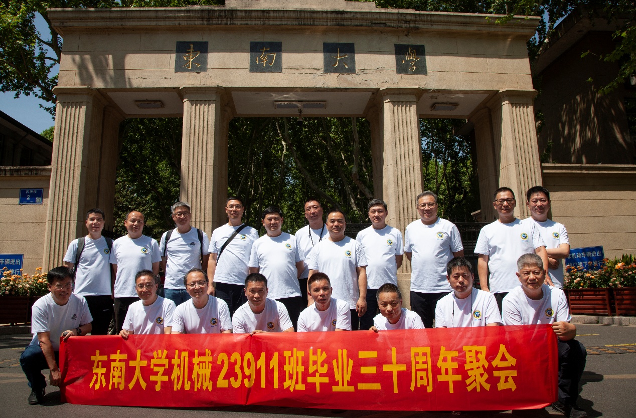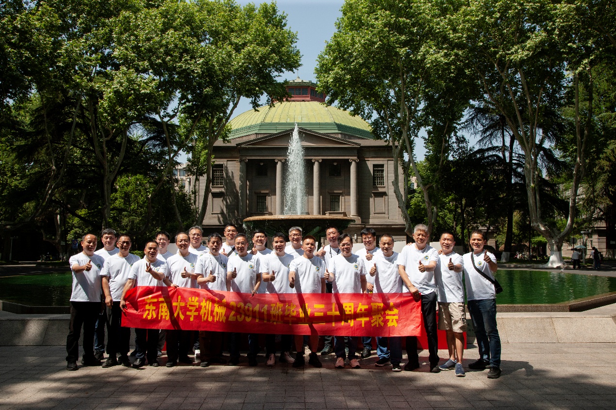 次日早上,校友们共赴历史底蕴深厚的四牌楼校区,回到这个大家共同生活了三年的地方。天公作美,是日校园内花红树绿、群莺乱飞。大家参观了庄重典雅的大礼堂、凝结科学精神的吴健雄纪念馆、充满活力与汗水的体育馆、郁郁葱葱的六朝松,大家在南高院前、六朝松下、老图书馆旁、正南门前,一次次驻足、一次次合影。每一处景致,都唤醒了大家埋藏心底的大学记忆。参观完毕,大家在中山院108教室重开一次久别重逢的班会,同学们轮流分享着毕业三十年来的人生感悟,同忆往事、共展未来,无论是深耕机械行业、成为国之重器的中坚力量,抑或是跨界发展、大家在各行各业各尽其力、努力工作。言语间,大家都流露出对母校栽培的感恩,对同窗情谊的珍视,以及对母校和机械学院的无限期盼。班级同学共同做出的一个重要决定:设立“23911教育基金”!同学们承诺,将每年捐赠1万元,连续10年,专项用于资助糖心视频 2名品学兼优的优秀学生。此虽微薄之力、小小善举,却是同学们饮水思源的拳拳之心。大家共同期望,“23911教育基金”的设立,能化作一股源源不断的动力,激励着新一代机械学子奋发图强,勇攀科技高峰,为母校增光添彩!
