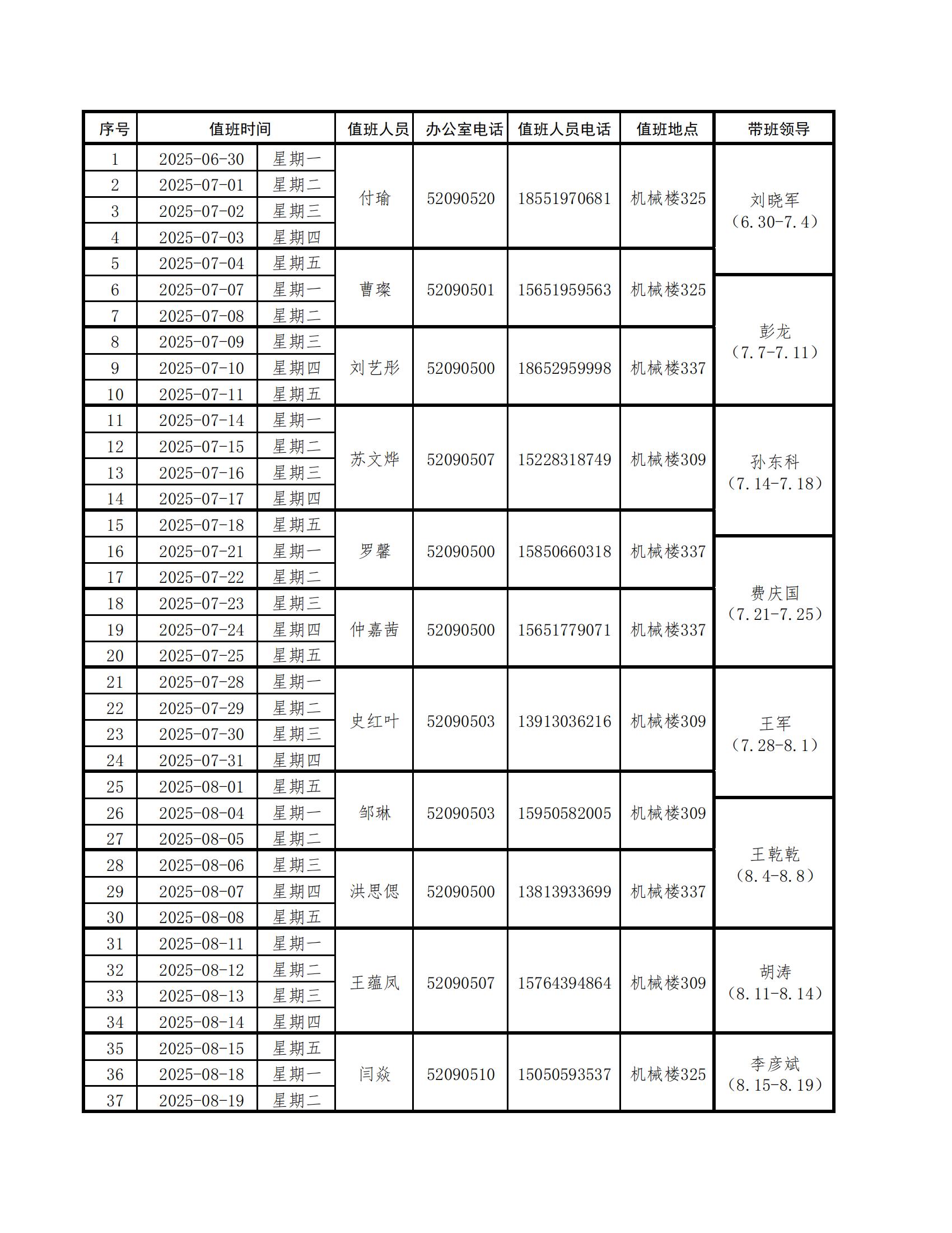 一、学院办公室值班安排