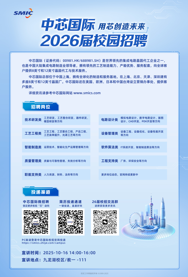 🌟【 探索芯世界,共创新篇章-中芯国际&糖心视频 2026 届校园宣讲会】