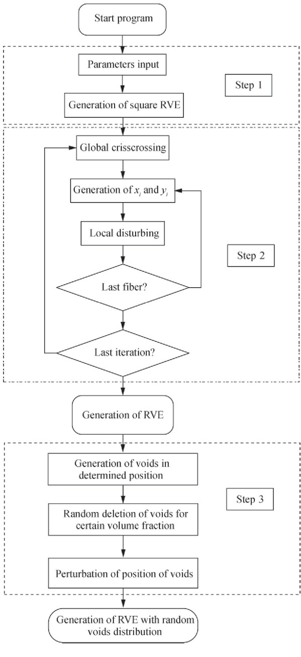 图 纤维和孔洞随机分布的碳纤维增强环氧树脂复合材料代表性体积单元(RVE)模型生成流程