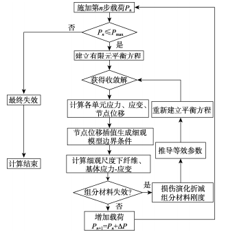 纤维增强复合材料强度的准确表征是复合材料力学性能研究的核心问题之一。该文以碳纤维增强树脂基复合材料层合板为研究对象,基于宏观-细观多尺度分析方法,根据复合材料的物理失效模式分别给出了基体和纤维的细观失效准则,同时考虑基体失效对复合材料层合板纤维轴向力学性能的影响。提出了新的刚度退化方式,可准确表征复合材料层合板的损伤演化过程,开展了复合材料层合板四点弯模型的多尺度交互渐进损伤分析和试验验证。结果表明:基于多尺度方法的复合材料层合板宏-细观交互渐进损伤分析结果与试验结果吻合较好,新的刚度退化方式可以准确模拟层合板的失效过程。