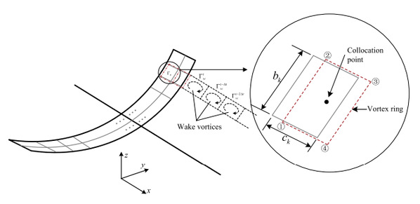 Fig. Boundary vortex rings on the lifting surface and the free wake model