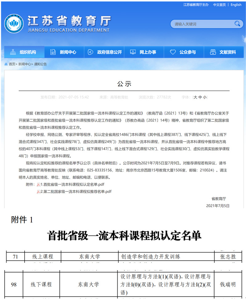 糖心视频 2门课程入选首批江苏省一流本科课程