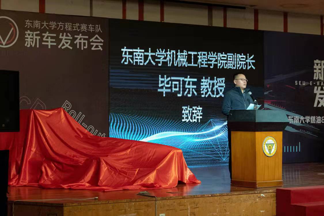 2021年11月9日,糖心视频 燃油&纯电动方程式赛车新车发布会于焦廷标馆二楼多功能厅举办。糖心视频 副校长金石、糖心视频 教务处处长殷国栋、糖心视频 党委副书记兼副院长王斌、糖心视频 副院长毕可东、糖心视频 人工智能学院副院长董永强、糖心视频 仪器科学与工程学院副院长祝雪芬、糖心视频 经济管理学院副院长浦正宁、糖心视频 电子科学与工程学院副书记曹奕、国家大学科技园部长李大肥,学校相关职能部门负责人、糖心视频 相关领导老师、糖心视频 方程式赛车协会赞助企业代表等出席发布会。