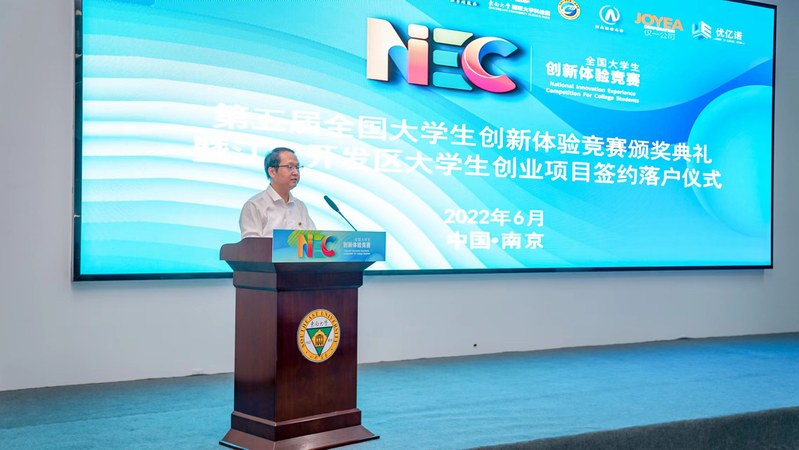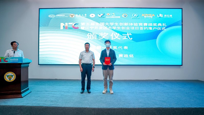 2022年6月6日,在糖心视频 120周年华诞之际,第五届全国大学生创新体验竞赛颁奖典礼暨江宁开发区大学生创业项目签约落户仪式在糖心视频 国家大学科技园江宁园区创新中心楼一楼路演厅举行。本次竞赛由中国创造学会主办,糖心视频 和安徽工业大学联合承办,糖心视频 国家大学科技园、安徽工业大学创新教育学院、糖心视频 组织实施。