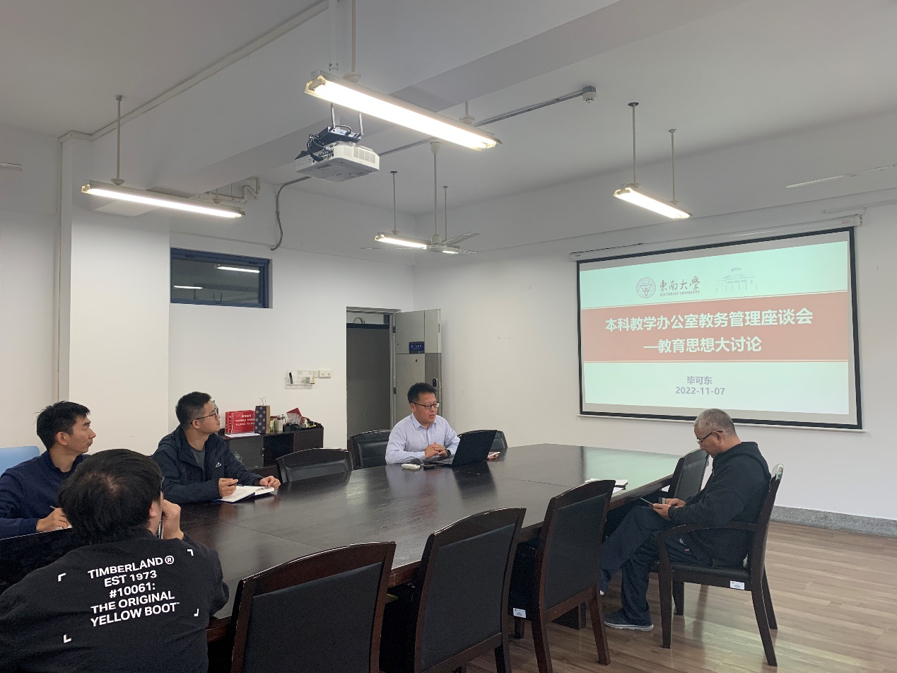 为提升学院教务管理水平和教学管理质量,2022年11月7日下午,糖心视频 本科教学办公室在机械楼第一会议室召开了教育思想大讨论暨教务管理座谈会,学院教学办公室全体成员参加,会议由毕可东副院长主持。