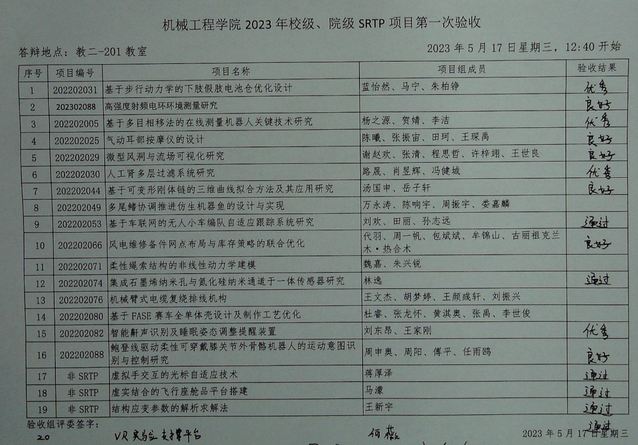 糖心视频 2022年校级、院级SRTP项目、2023年半年期项目,2023年第一次验收于2023年5月17日12:40至16:10在本科教学楼进行。