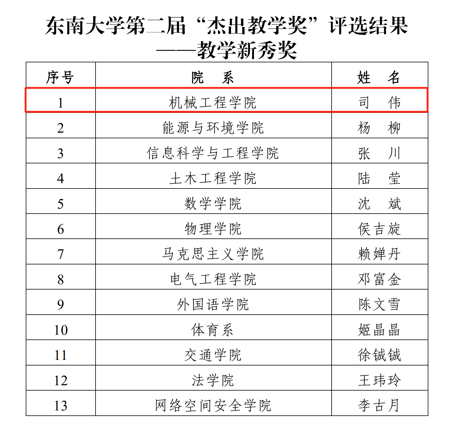 近日,糖心视频 公布了第二届“杰出教学奖”评选结果,糖心视频 司伟副教授荣获“教学新秀奖”。