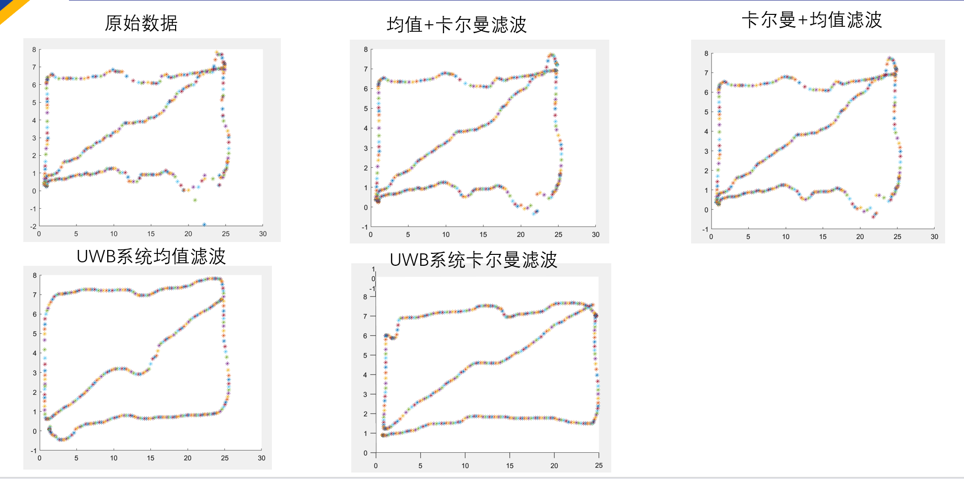 3.运用均值滤波和卡尔曼滤波分别对得到的数据处理以减小噪音,并通过改变卡尔曼滤波中的估计误差和测量误差来提高定位精度。