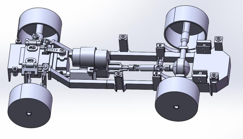 2.建立新车架三维模型:经过对原有车架的拆装和建模,我们在保持关键零件形状的情况下,就零件位置的调整和适配提出了对车架的更改方案。