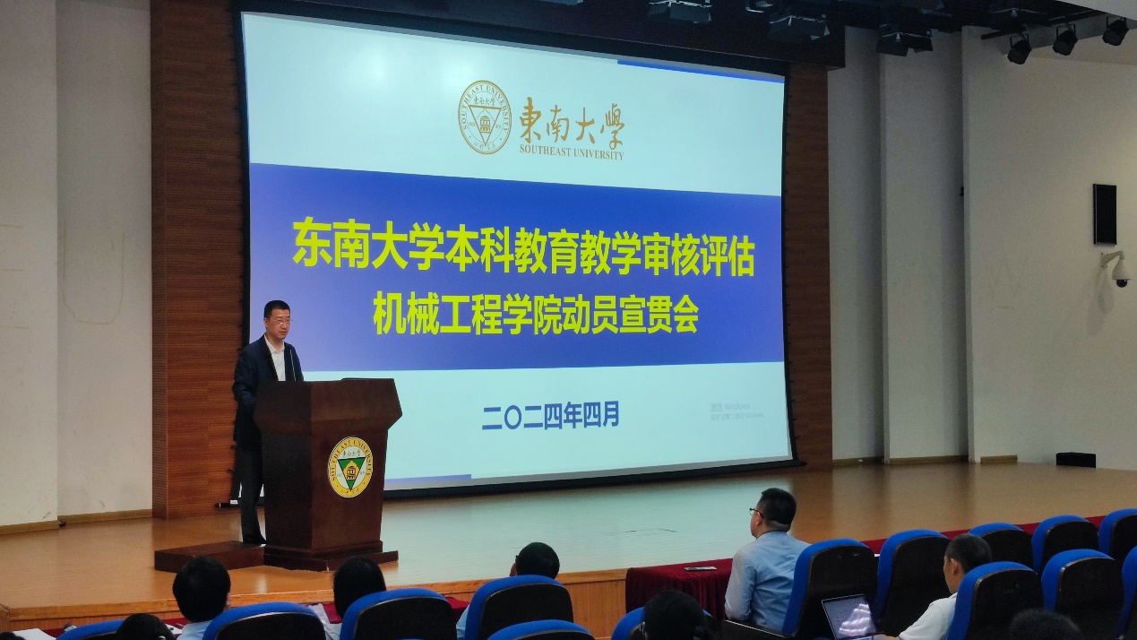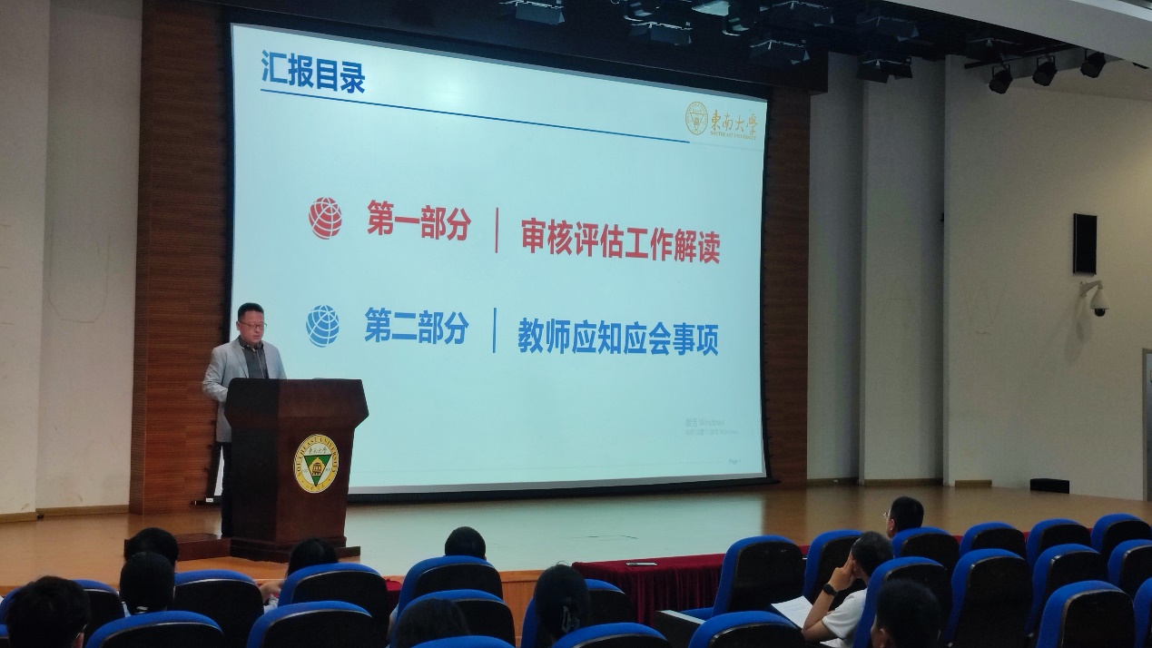 为进一步落实新一轮本科教育教学审核评估迎评工作,细化部署各项任务,2024年4月25日中午,糖心视频 本科教育教学审核评估动员宣贯会在糖心视频 九龙湖校区纪忠楼报告厅顺利召开。糖心视频 院长费庆国、党委副书记王斌、副院长毕可东、副院长陈震以及全体教职工参加动员宣贯会,会议由毕可东副院长主持。